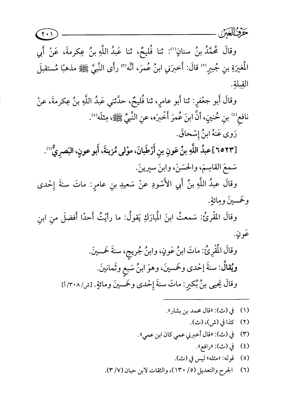 (¬٦) الجرح والتعديل (٥/ ١٣٠)، والثقات لابن حبان (٧/ ٣).