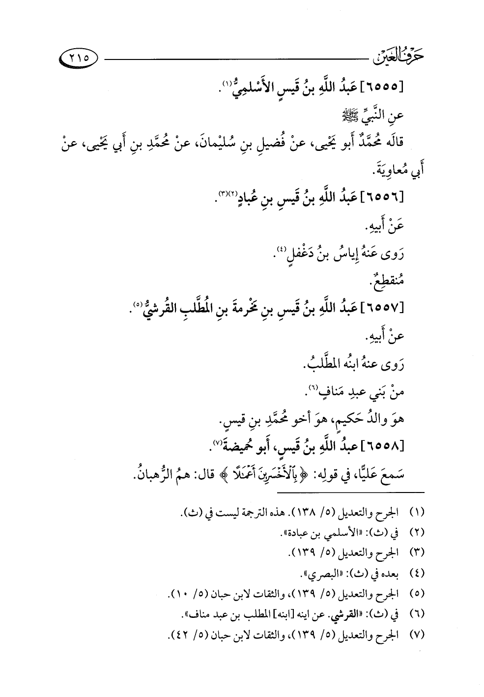 (¬٥) الجرح والتعديل (٥/ ١٣٩)، والثقات لابن حبان (٥/ ١٠).