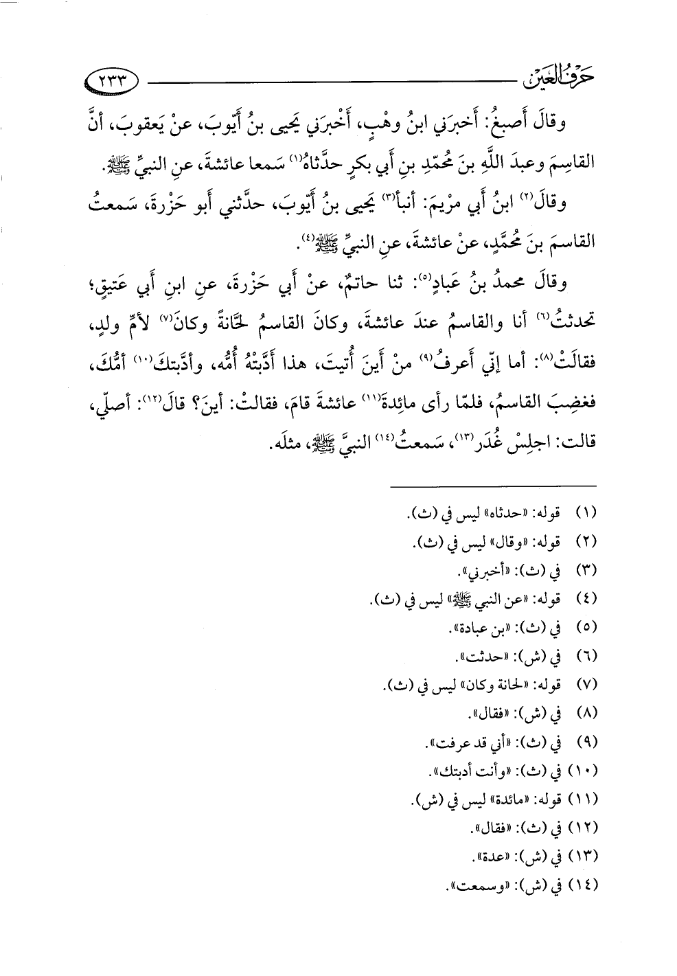 وقالَ (¬٢) ابنُ أَبي مرْيمَ: أنبأ (¬٣) يَحيى بنُ أَيُّوب، حدَّثني أَبو حَزْرةَ، سَمعتُ القاسمَ بنَ مُحمَّدٍ، عنْ عائشةَ، عنِ النبيِّ -صلى اللَّه عليه وسلم- (¬٤).