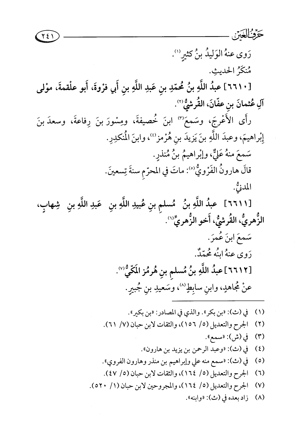 (¬٧) الجرح والتعديل (٥/ ١٦٤)، والمجروحين لابن حبان (١/ ٥٢٠).