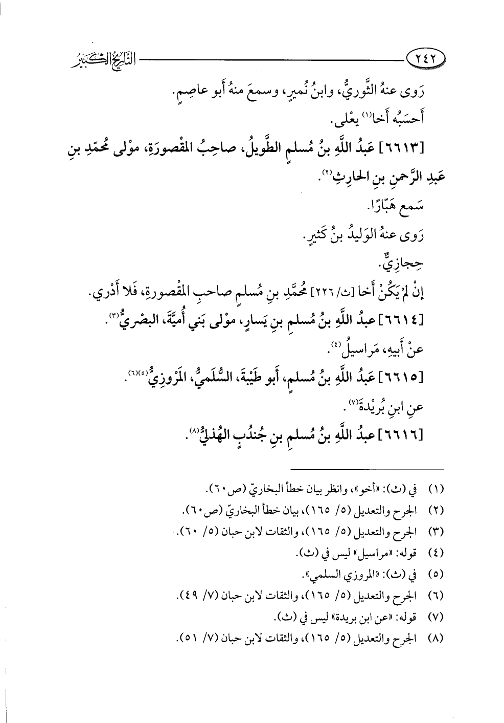 كتاب التاريخ الكبير للبخاري - ت الدباسي والنحال (اسم الجزء: 6)
