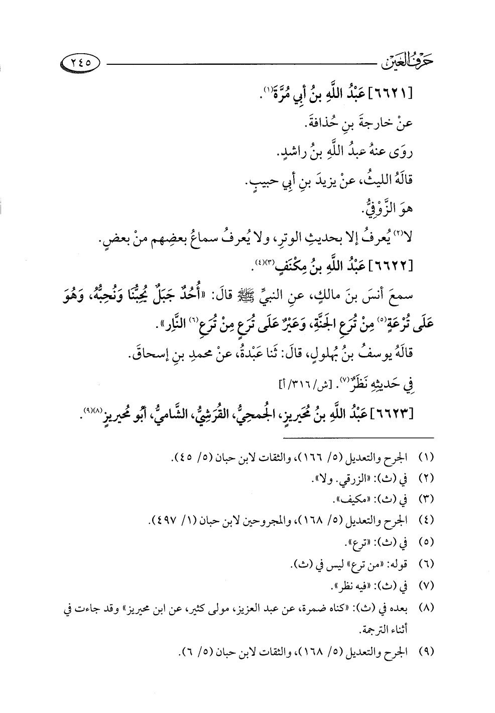 (¬٤) الجرح والتعديل (٥/ ١٦٨)، والمجروحين لابن حبان (١/ ٤٩٧).