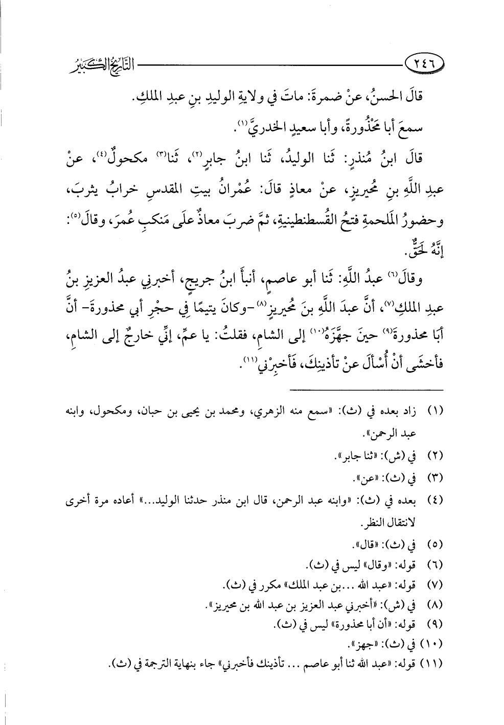 (¬٤) بعده في (ث): "وابنه عبد الرحمن، قال ابن منذر حدثنا الوليد. . . " أعاده مرة أخرى لانتقال النظر.