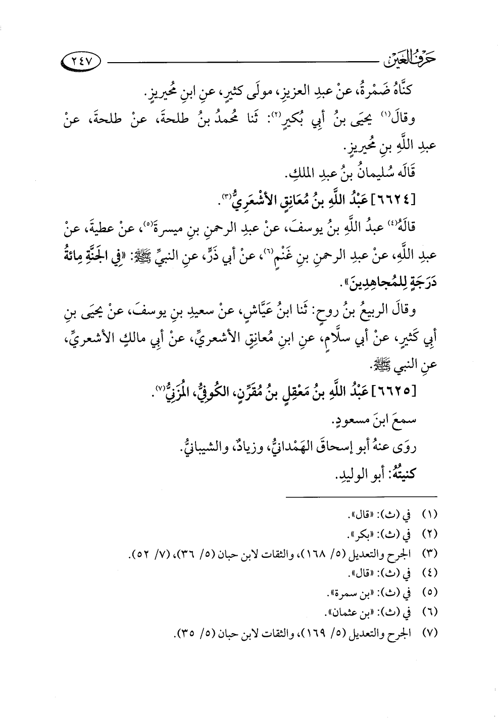 (¬٧) الجرح والتعديل (٥/ ١٦٩)، والثقات لابن حبان (٥/ ٣٥).