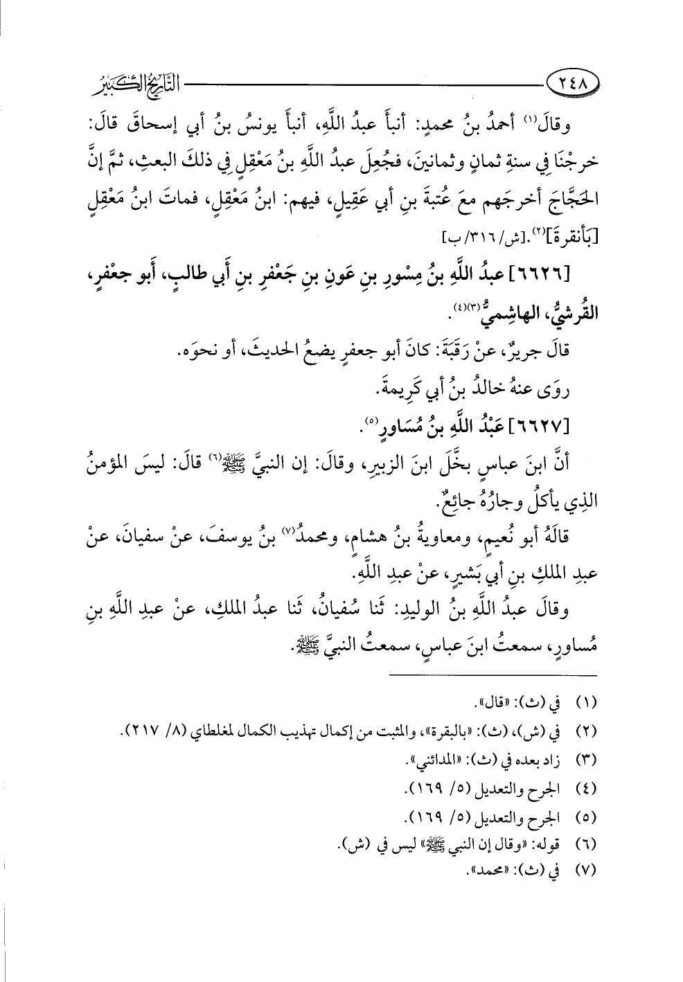 كتاب التاريخ الكبير للبخاري - ت الدباسي والنحال (اسم الجزء: 6)