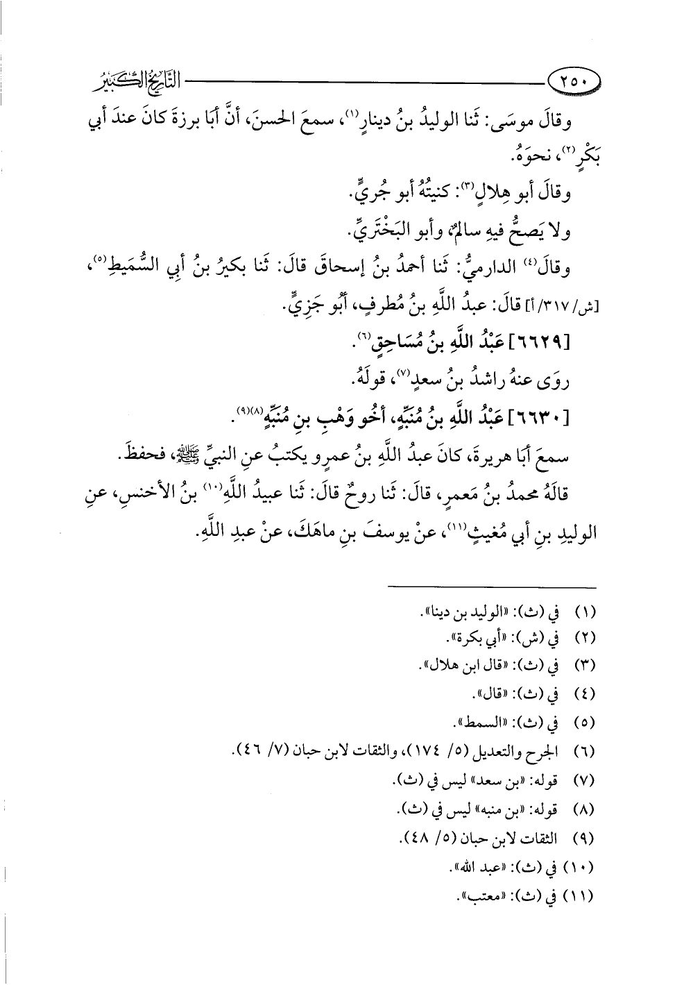 كتاب التاريخ الكبير للبخاري - ت الدباسي والنحال (اسم الجزء: 6)