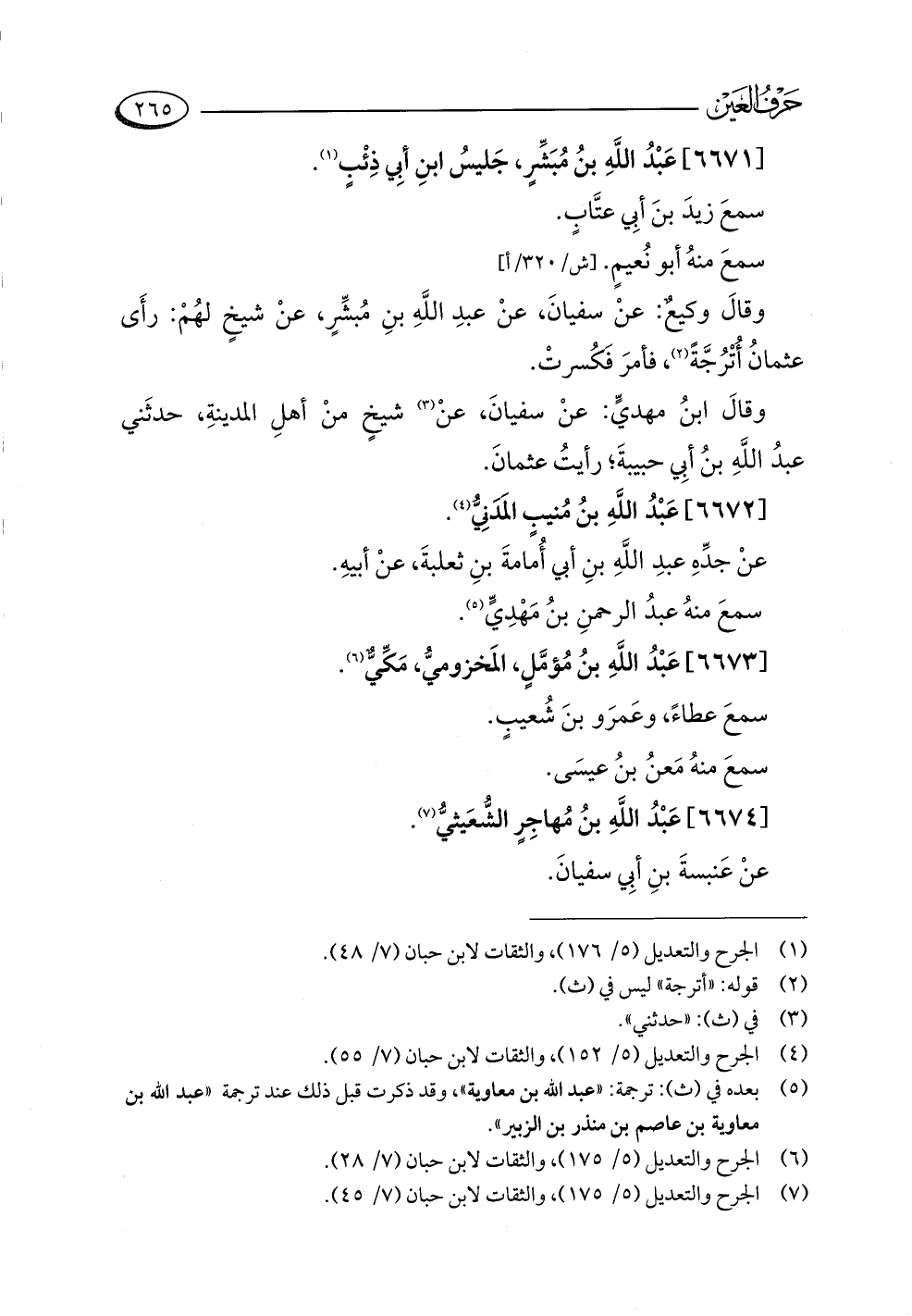 (¬٦) الجرح والتعديل (٥/ ١٧٥)، والثقات لابن حبان (٧/ ٢٨).