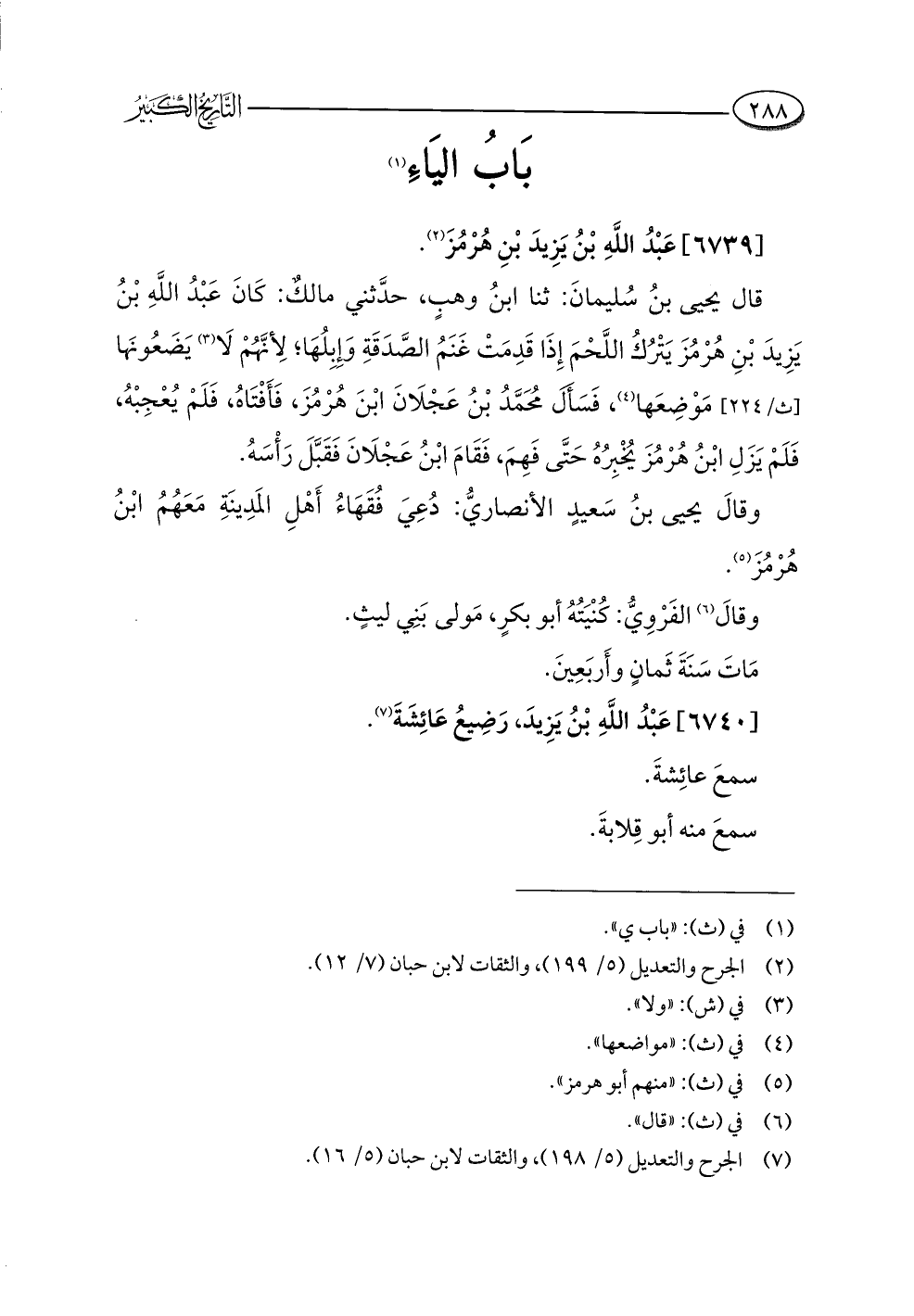 [٦٧٣٩] عَبْدُ اللَّهِ بْنُ يَزِيدَ بْنِ هُرْمُزَ (¬٢).