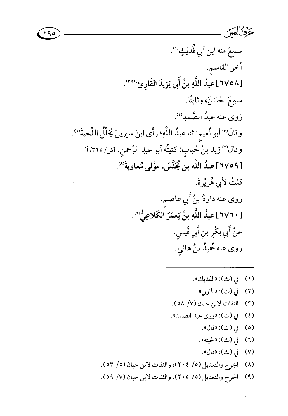 (¬٩) الجرح والتعديل (٥/ ٢٠٥)، والثقات لابن حبان (٧/ ٥٩).