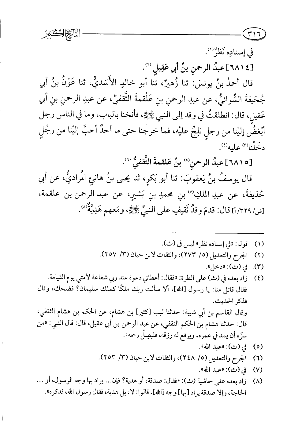 (¬٦) الجرح والتعديل (٥/ ٢٤٨)، والثقات لابن حبان (٣/ ٢٥٣).