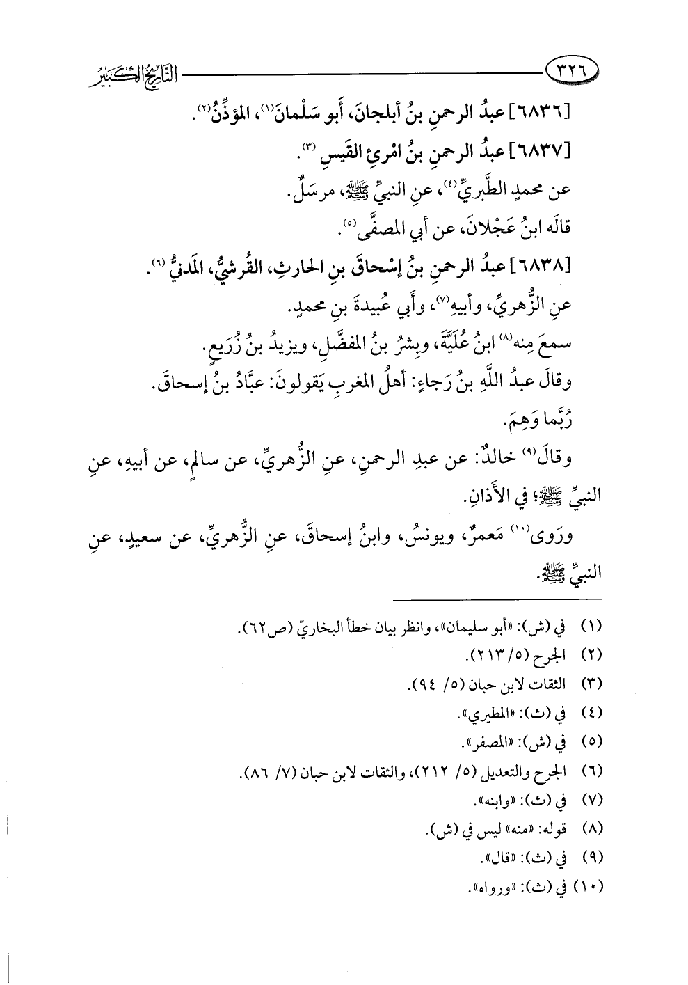 كتاب التاريخ الكبير للبخاري - ت الدباسي والنحال (اسم الجزء: 6)