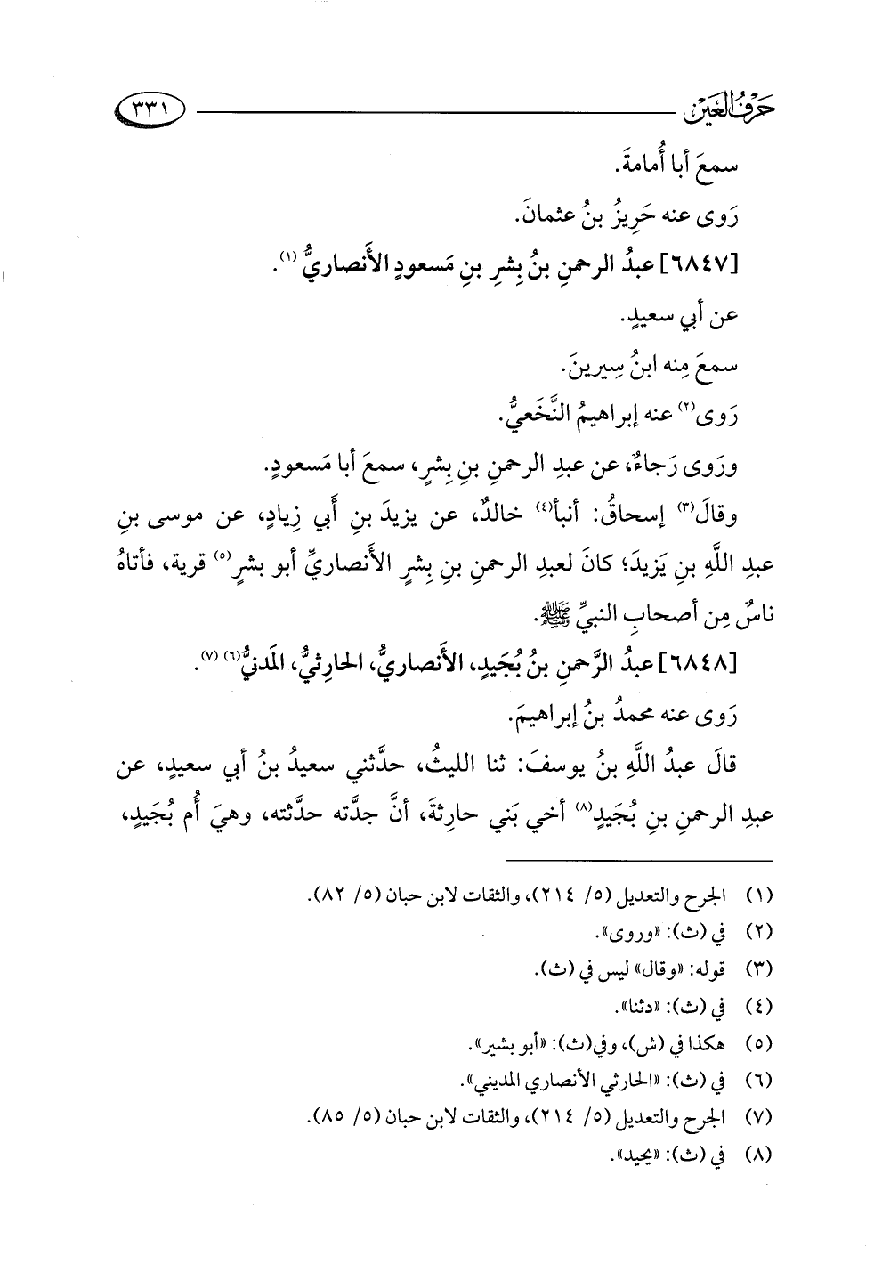(¬٧) الجرح والتعديل (٥/ ٢١٤)، والثقات لابن حبان (٥/ ٨٥).