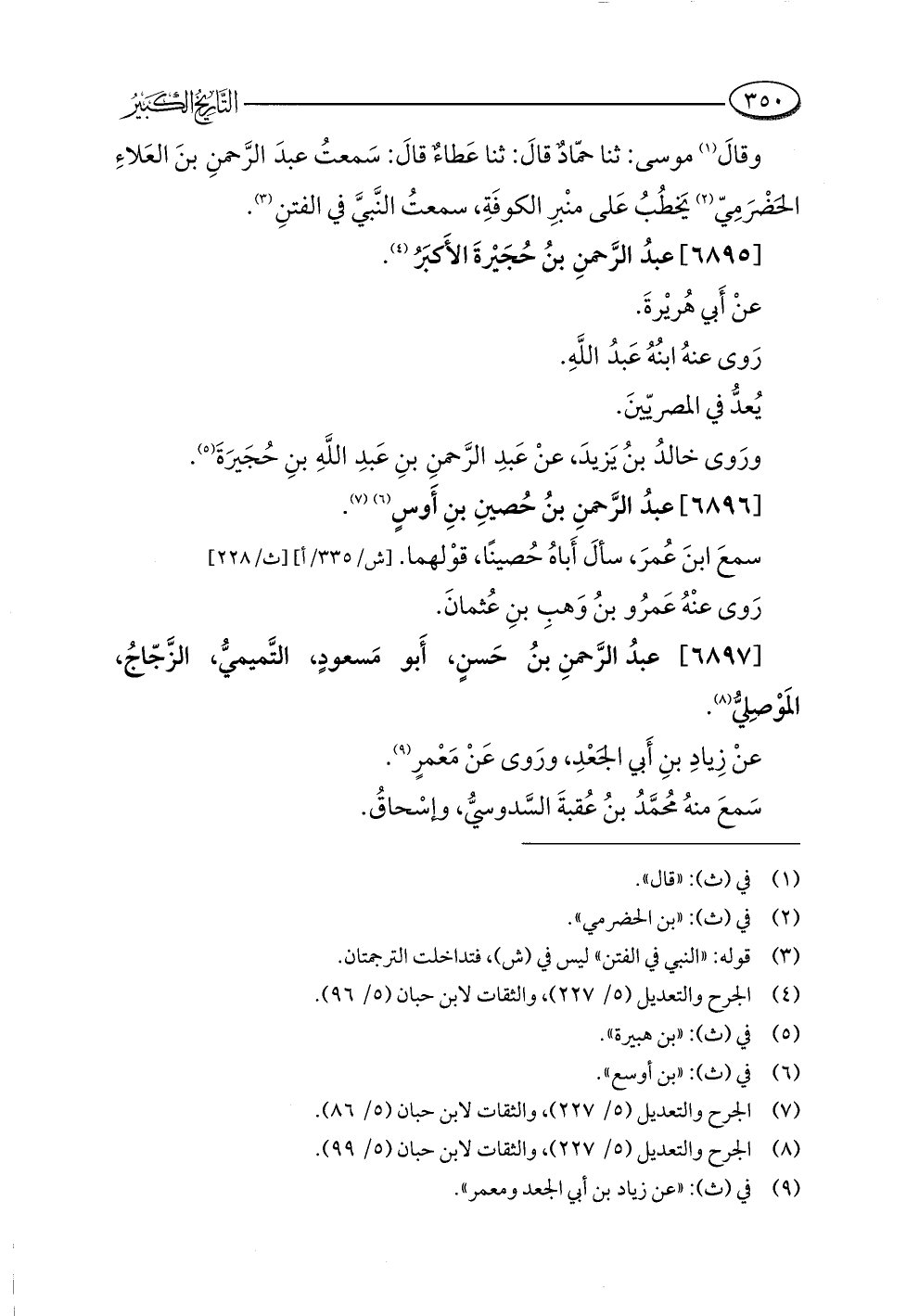 كتاب التاريخ الكبير للبخاري - ت الدباسي والنحال (اسم الجزء: 6)