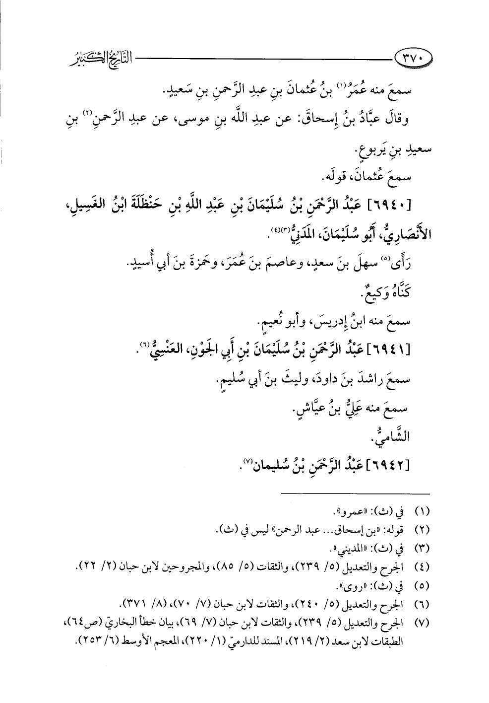 (¬٦) الجرح والتعديل (٥/ ٢٤٠)، والثقات لابن حبان (٧/ ٧٠)، (٨/ ٣٧١).