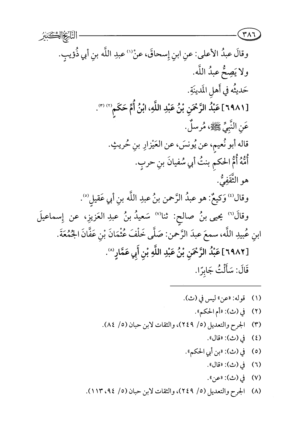 كتاب التاريخ الكبير للبخاري - ت الدباسي والنحال (اسم الجزء: 6)