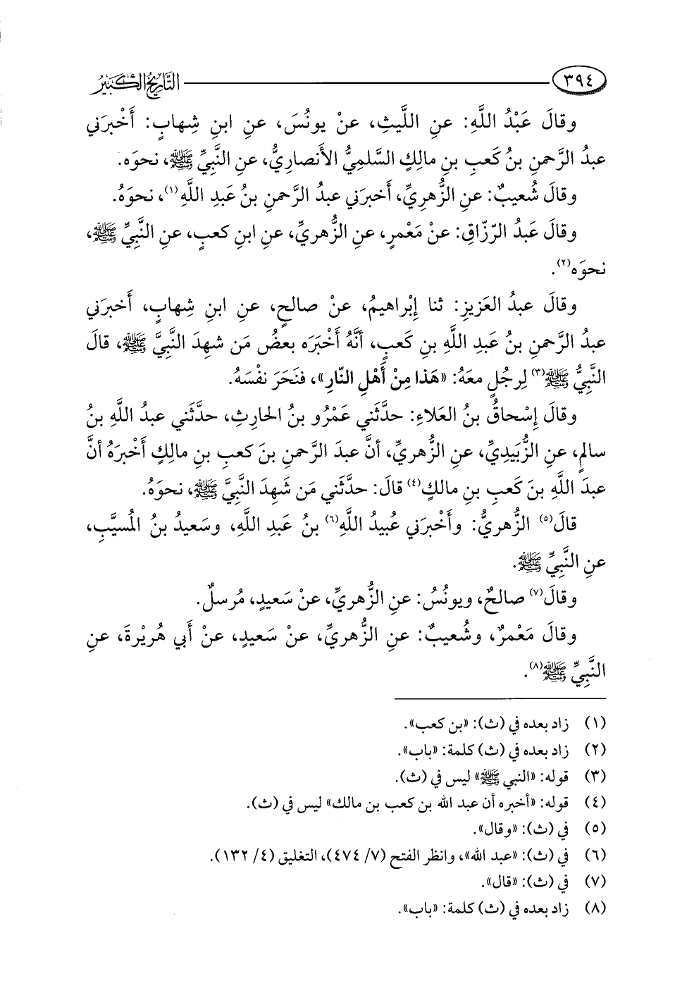 وقالَ إِسْحاقُ بنُ العَلاءِ: حدَّثَني عَمْرُو بنُ الحارِثِ، حدَّثَني عبدُ اللَّهِ بنُ سالمٍ، عنِ الزُّبَيدِيِّ، عنِ الزُّهريِّ، أنَّ عبدَ الرَّحمنِ بنَ كعبِ بنِ مالِكٍ أَخْبرَهُ أنَّ عبدَ اللَّهِ بنَ كَعبِ بنِ مالكٍ (¬٤) قالَ: حدَّثَني مَن شَهِدَ النَّبِيَّ -صلى اللَّه عليه وسلم-، نحوَهُ.