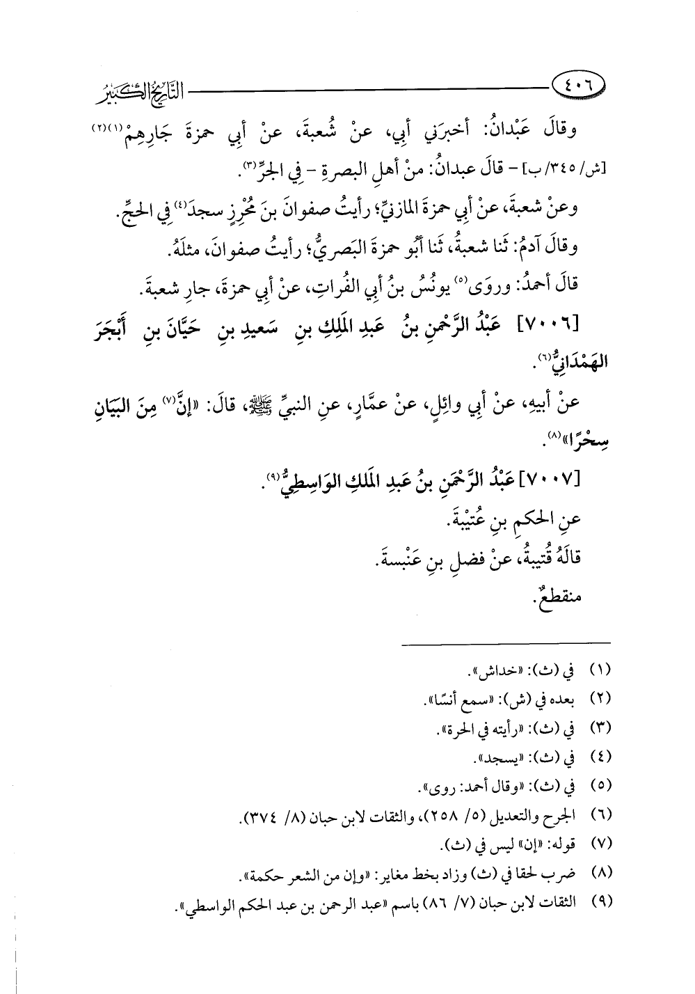 كتاب التاريخ الكبير للبخاري - ت الدباسي والنحال (اسم الجزء: 6)
