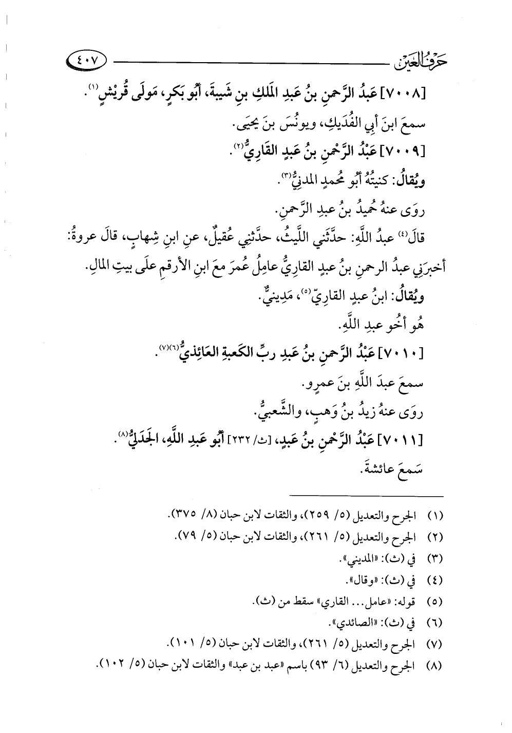 [٧٠٠٩] عَبْدُ الرَّحْمن بنُ عَبدٍ القَارِيُّ (¬٢).