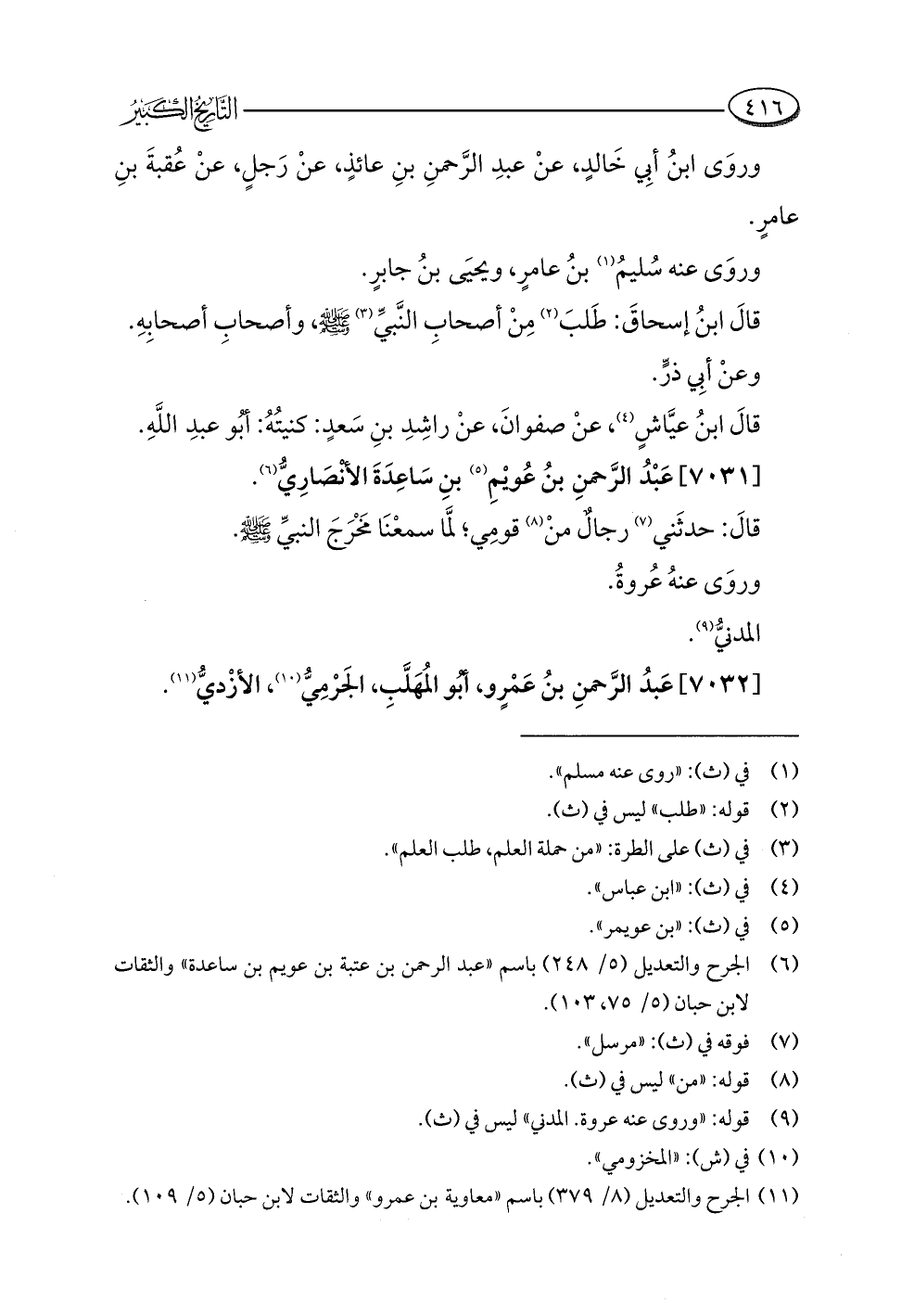 (¬٦) الجرح والتعديل (٥/ ٢٤٨) باسم "عبد الرحمن بن عتبة بن عويم بن ساعدة" والثقات لابن حبان (٥/ ٧٥، ١٠٣).