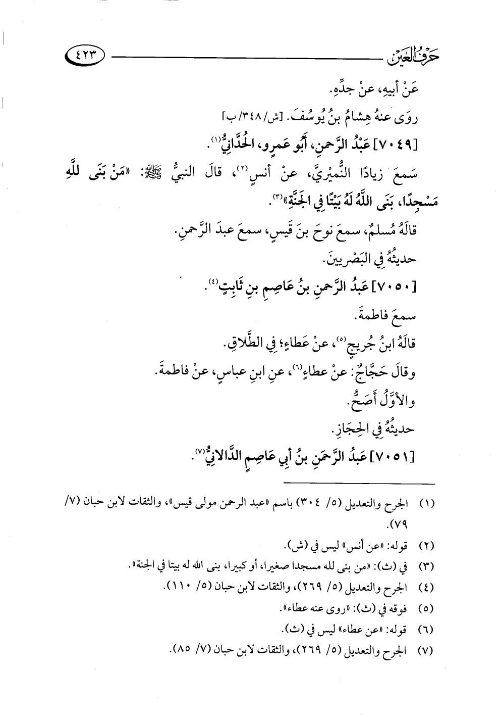 (¬٧) الجرح والتعديل (٥/ ٢٦٩)، والثقات لابن حبان (٧/ ٨٥).