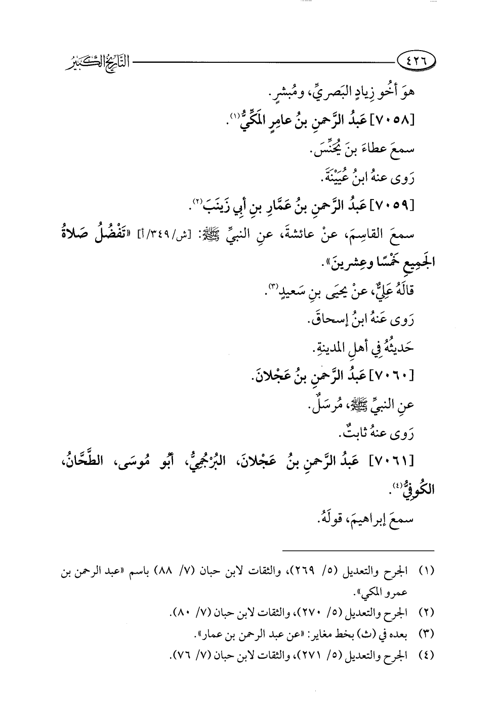 (¬٤) الجرح والتعديل (٥/ ٢٧١)، والثقات لابن حبان (٧/ ٧٦).