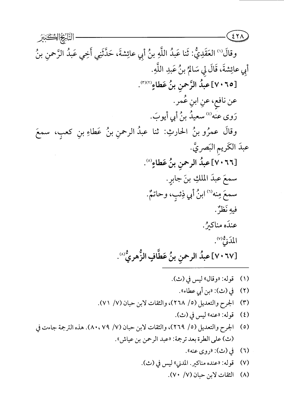 (¬٥) الجرح والتعديل (٥/ ٢٦٩)، والثقات لابن حبان (٧/ ٧٩، ٨٠). هذه الترجمة جاءت في (ث) على الطرة بعد ترجمة: "عبد الرحمن بن عياش".