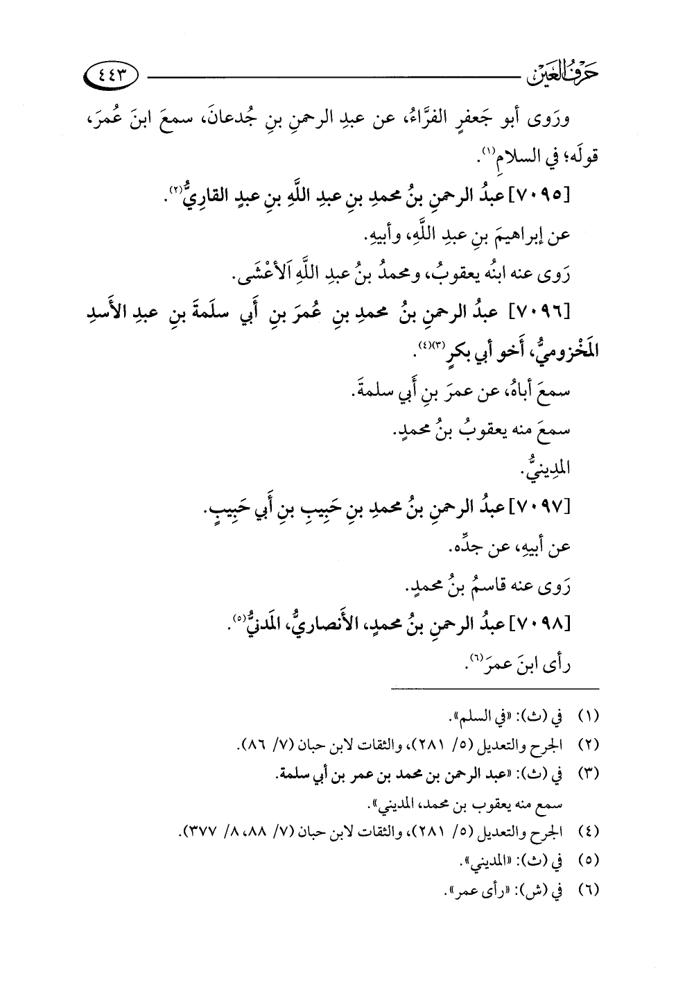 (¬٤) الجرح والتعديل (٥/ ٢٨١)، والثقات لابن حبان (٧/ ٨٨، ٨/ ٣٧٧).