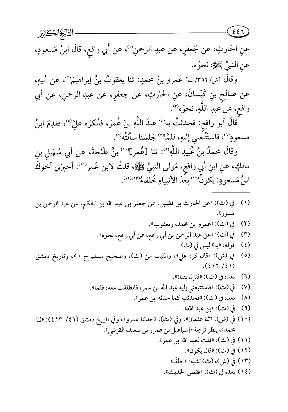 وقالَ عَمرو بنُ محمدٍ: ثنا يعقوبُ بنُ إبراهيمَ (¬٢)، عن أبيهِ، عن صالحِ بنِ كَيْسانَ، عنِ الحارثِ، عن جعفرٍ، عن عبدِ الرحمنِ، عن أبي رافعٍ، عن عبدِ اللَّهِ، نحوَه (¬٣).