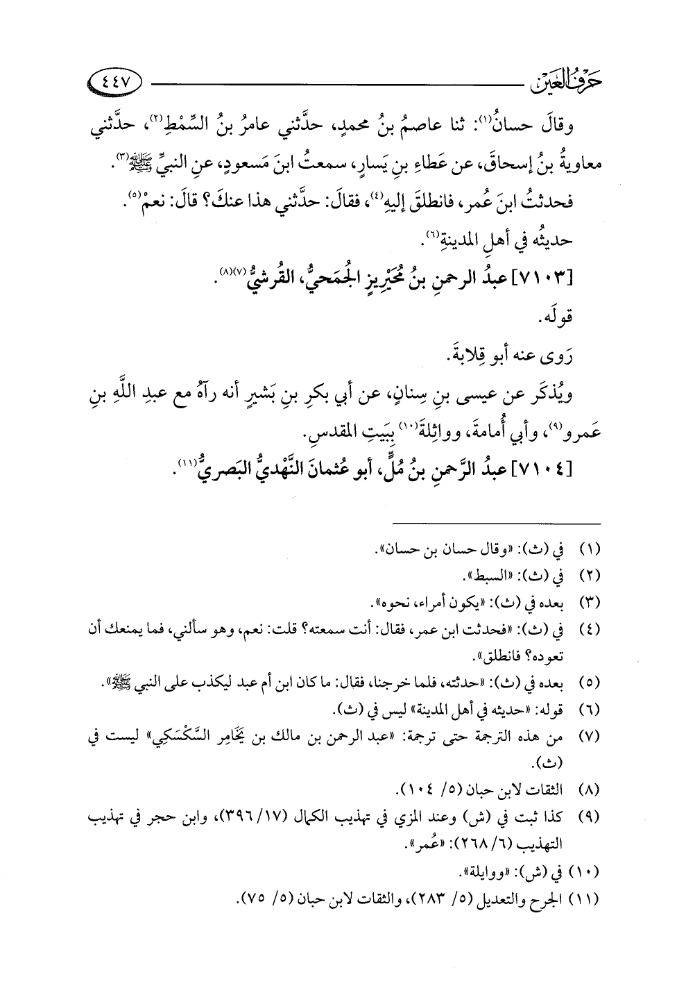 (¬١١) الجرح والتعديل (٥/ ٢٨٣)، والثقات لابن حبان (٥/ ٧٥).