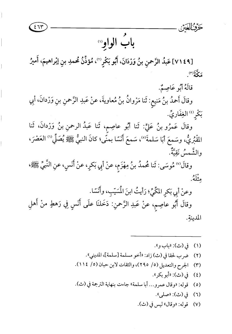 [٧١٤٩] عَبدُ الرَّحمنِ بنُ وَرْدَانَ، أَبُو بَكْرٍ (¬٢)، مُؤذِّنُ مُحمدِ بنِ إبْراهيمَ، أَميرُ مَكَّةَ (¬٣).