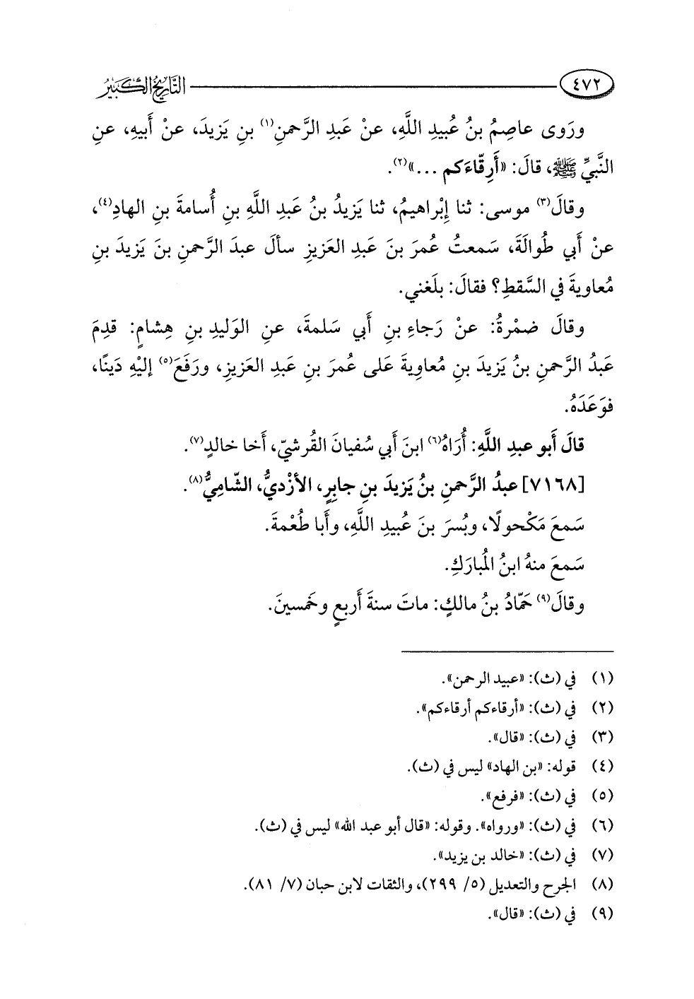 كتاب التاريخ الكبير للبخاري - ت الدباسي والنحال (اسم الجزء: 6)