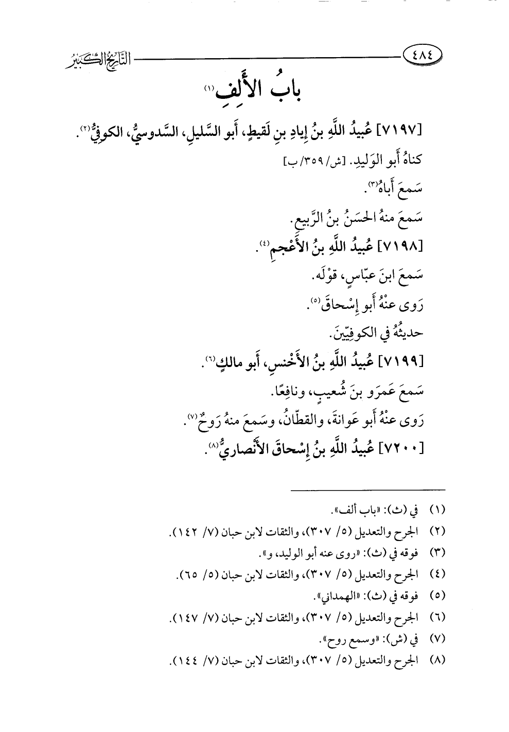 (¬٨) الجرح والتعديل (٥/ ٣٠٧)، والثقات لابن حبان (٧/ ١٤٤).
