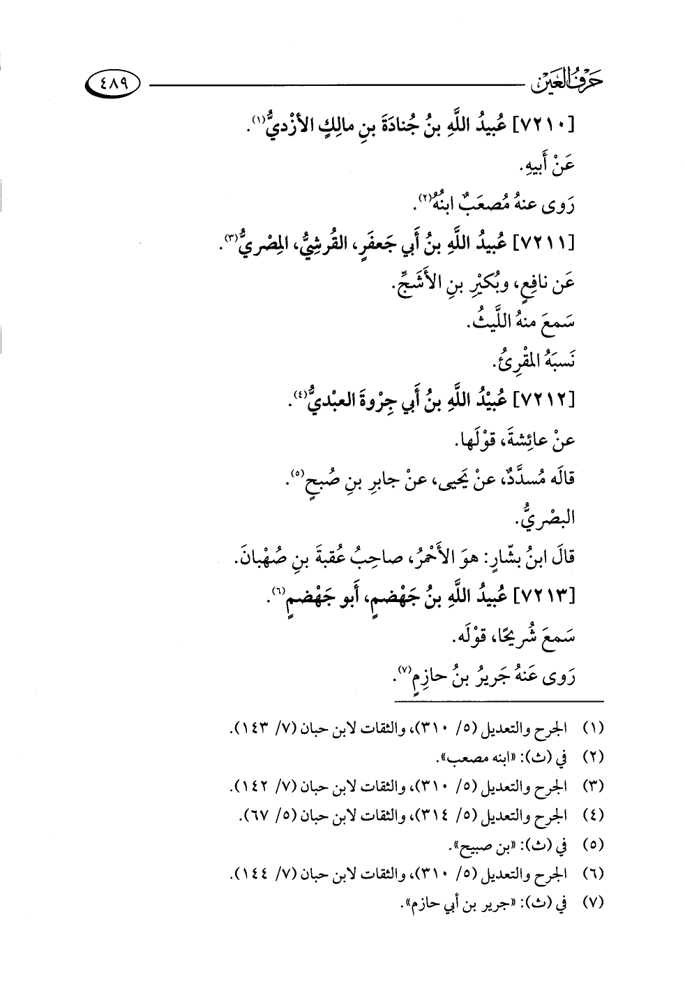 (¬٣) الجرح والتعديل (٥/ ٣١٠)، والثقات لابن حبان (٧/ ١٤٢).