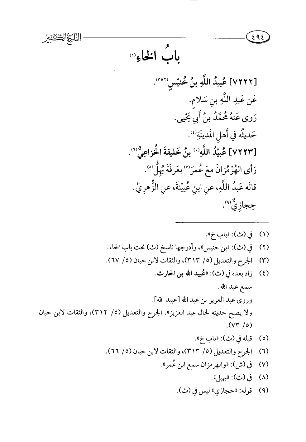 [٧٢٢٢] عُبيدُ اللَّهِ بنُ خُنيْسٍ (¬٢) (¬٣).