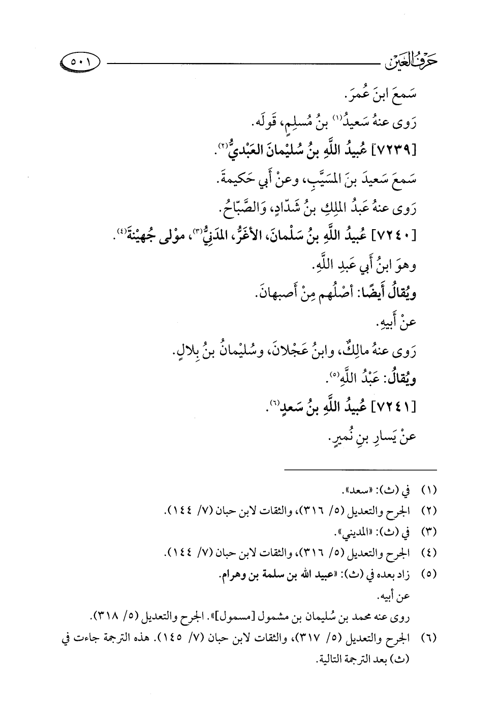 (¬٦) الجرح والتعديل (٥/ ٣١٧)، والثقات لابن حبان (٧/ ١٤٥). هذه الترجمة جاءت في (ث) بعد الترجمة التالية.