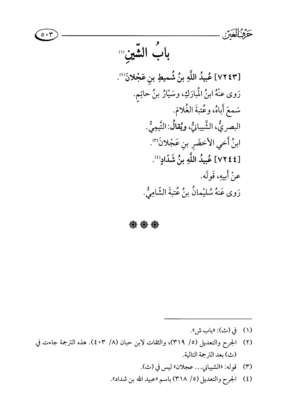 (¬٤) الجرح والتعديل (٥/ ٣١٨) باسم "عبيد اللَّه بن شداد".