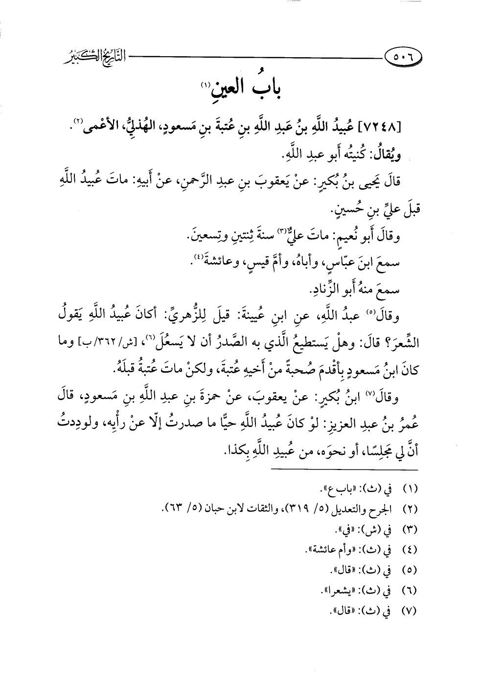 كتاب التاريخ الكبير للبخاري - ت الدباسي والنحال (اسم الجزء: 6)