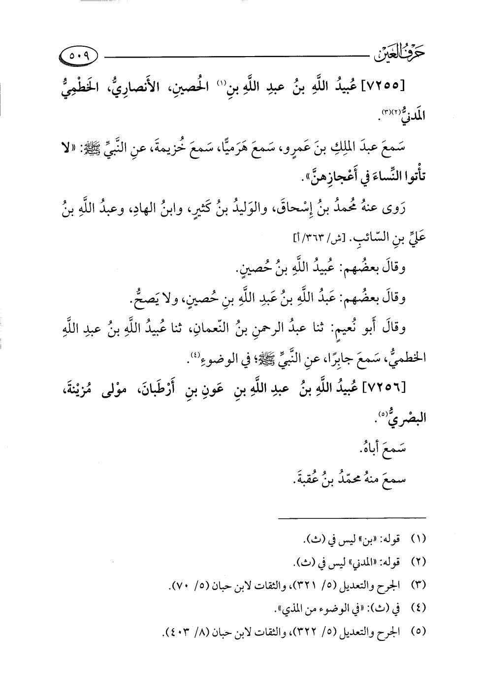 [٧٢٥٥] عُبيدُ اللَّهِ بنُ عبدِ اللَّهِ بنِ (¬١) الحُصينِ، الأَنصارِيُّ، الخَطْمِيُّ المَدنيُّ (¬٢) (¬٣).