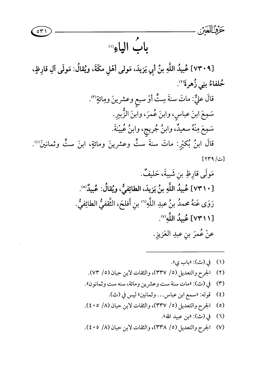 (¬٧) الجرح والتعديل (٥/ ٣٣٨)، والثقات لابن حبان (٨/ ٤٠٥).