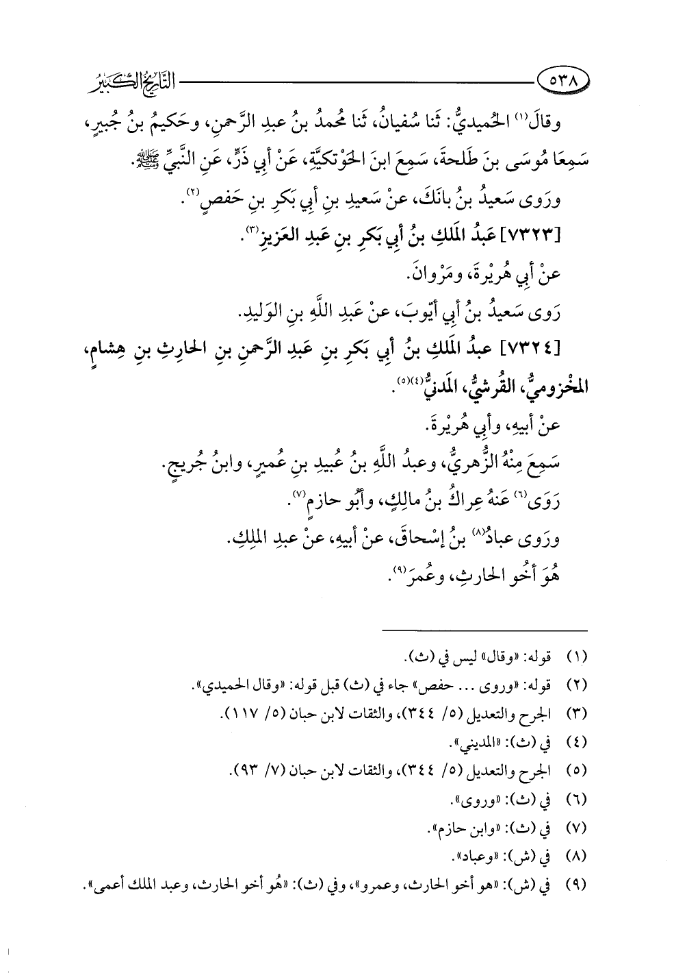 (¬٢) قوله: "وروى. . . حفص" جاء في (ث) قبل قوله: "وقال الحميدي".