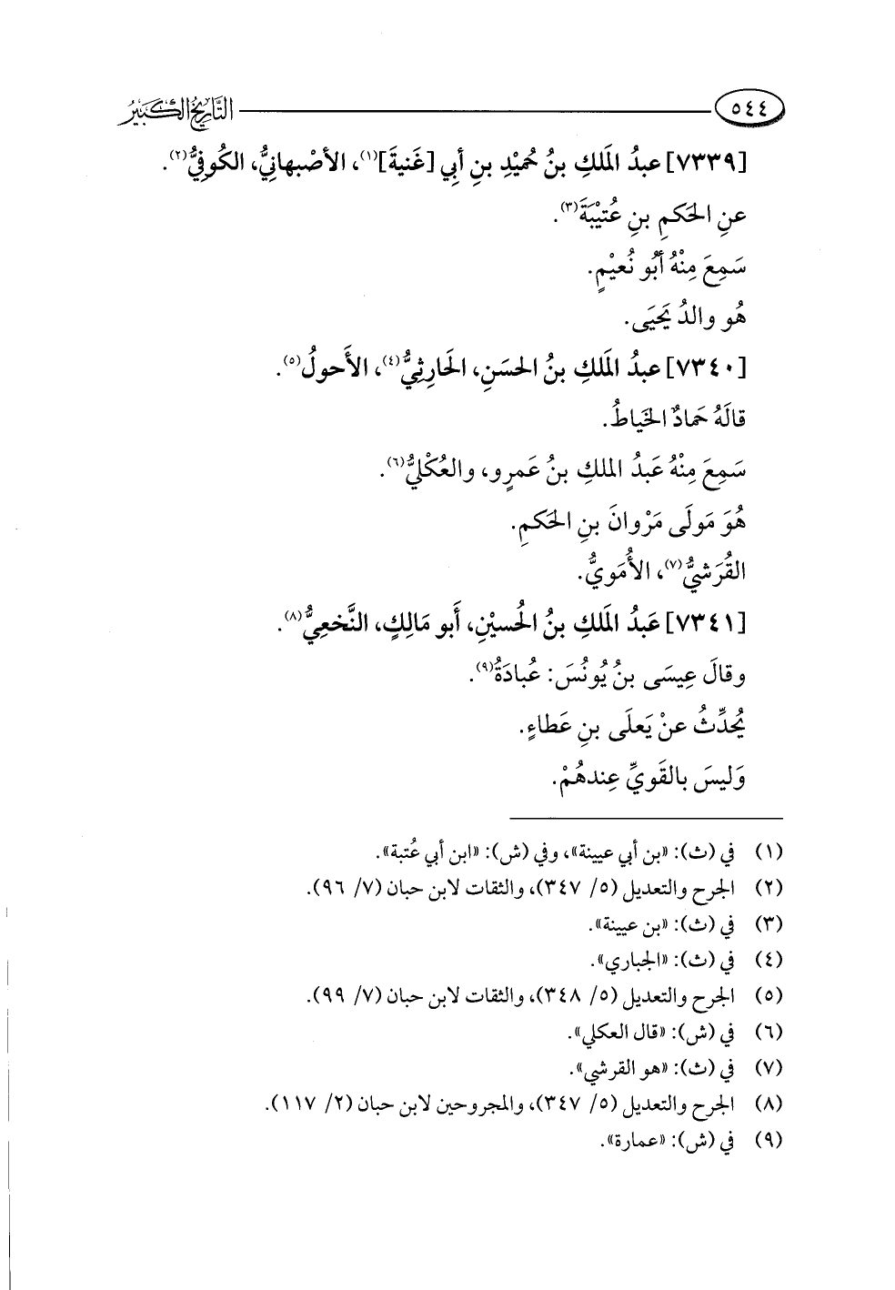 [٧٣٤٠] عبدُ المَلكِ بنُ الحسَنِ، الحَارِثِيُّ (¬٤)، الأَحولُ (¬٥).