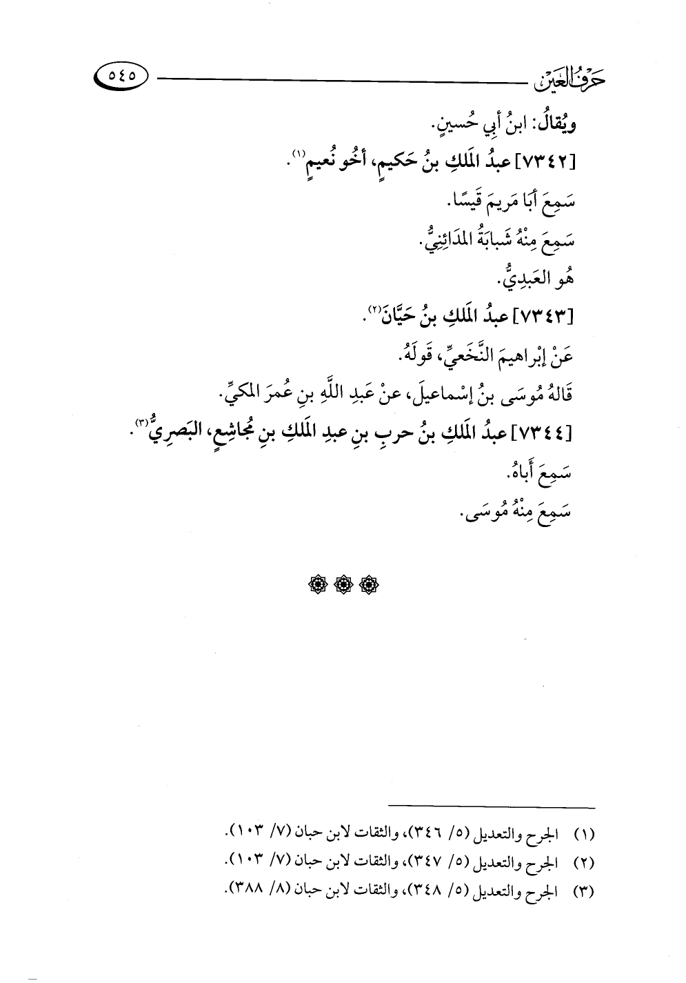 (¬٣) الجرح والتعديل (٥/ ٣٤٨)، والثقات لابن حبان (٨/ ٣٨٨).