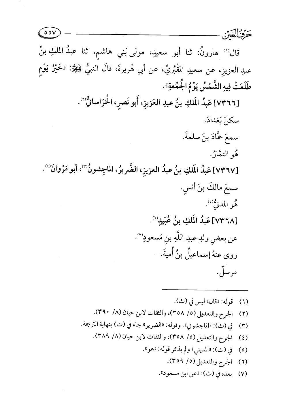 [٧٣٦٧] عَبدُ المَلكِ بنُ عبدُ العزيزِ، الضَّريرُ، الماجِشونُ (¬٣)، أَبُو مَرْوانَ (¬٤).