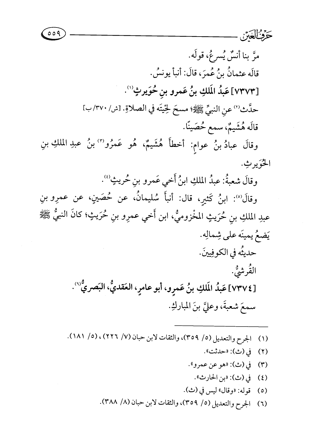وقالَ عبادُ بنُ عوامٍ: أخطأَ هُشَيمٌ، هُو عَمرُو (¬٣) بنُ عبدِ الملكِ بنِ الحُوَيرثِ.