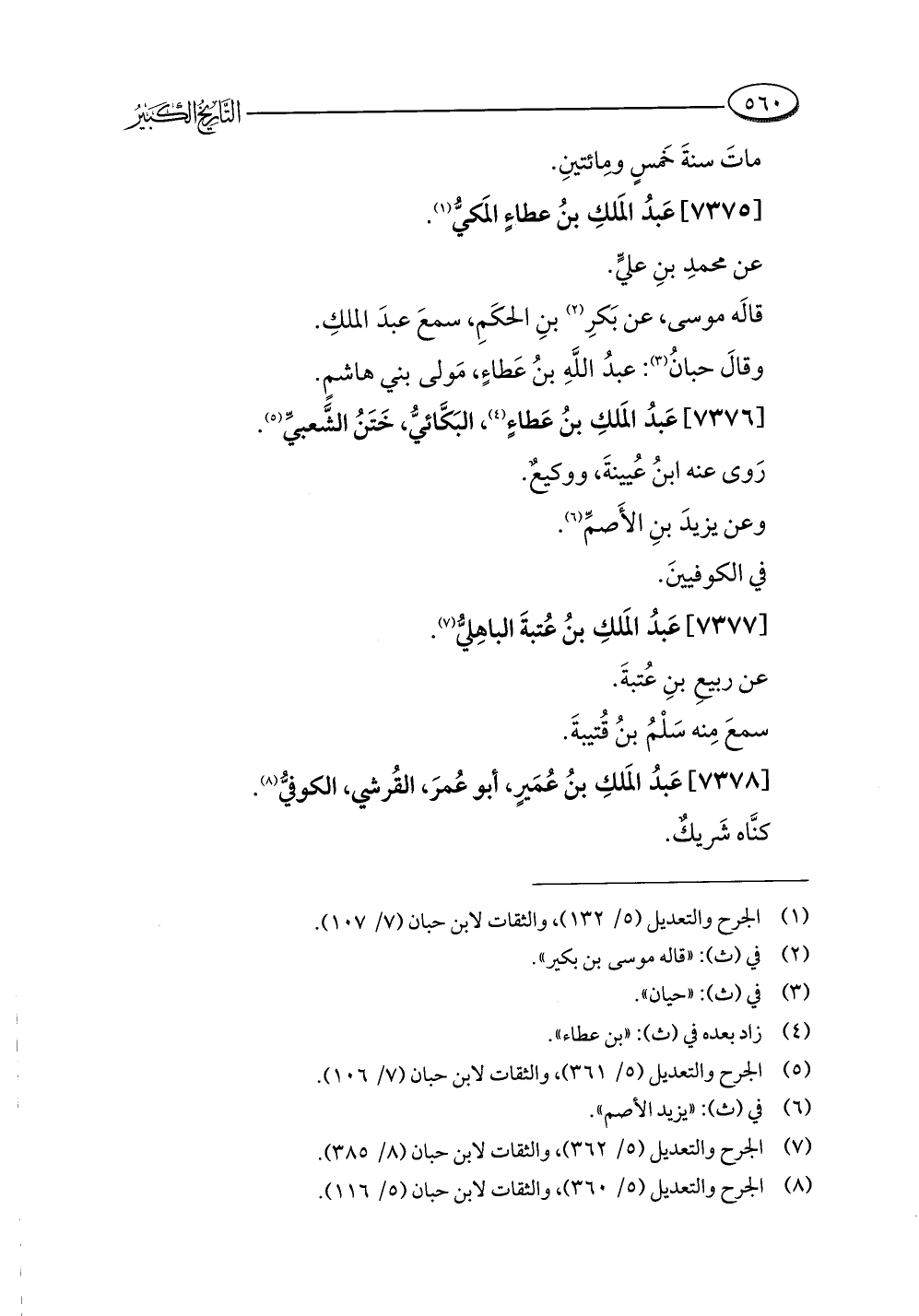 (¬٥) الجرح والتعديل (٥/ ٣٦١)، والثقات لابن حبان (٧/ ١٠٦).