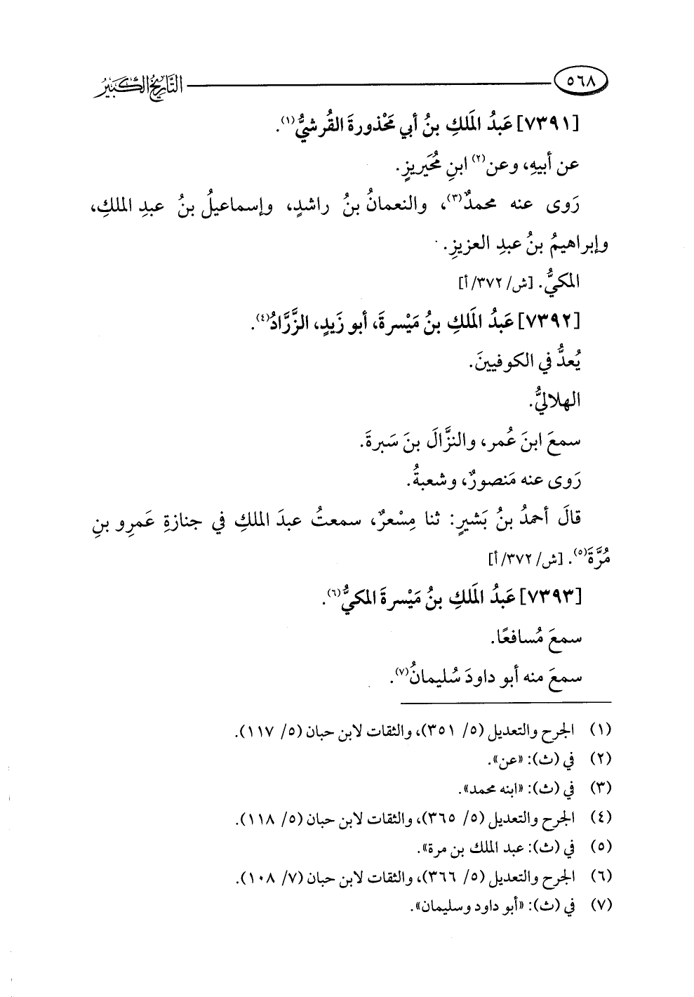 (¬٦) الجرح والتعديل (٥/ ٣٦٦)، والثقات لابن حبان (٧/ ١٠٨).