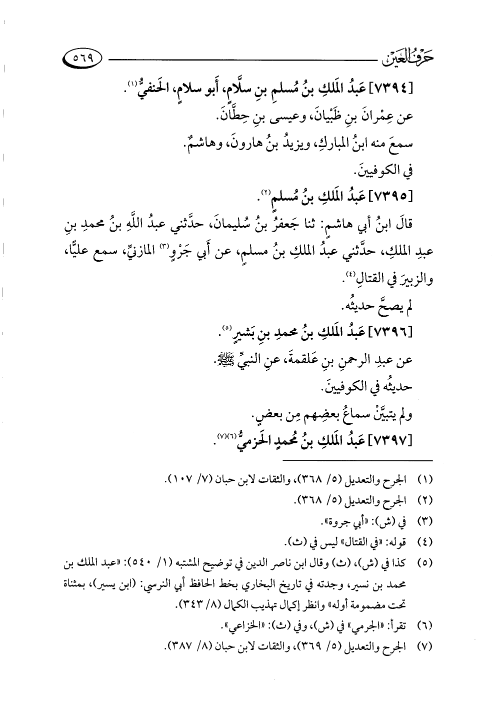(¬٧) الجرح والتعديل (٥/ ٣٦٩)، والثقات لابن حبان (٨/ ٣٨٧).