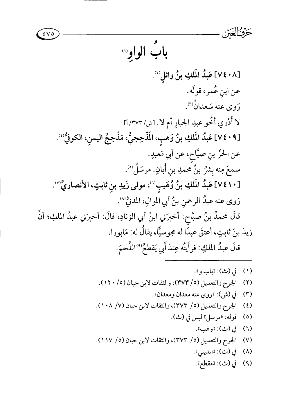 (¬٧) الجرح والتعديل (٥/ ٣٧٣)، والثقات لابن حبان (٥/ ١١٧).