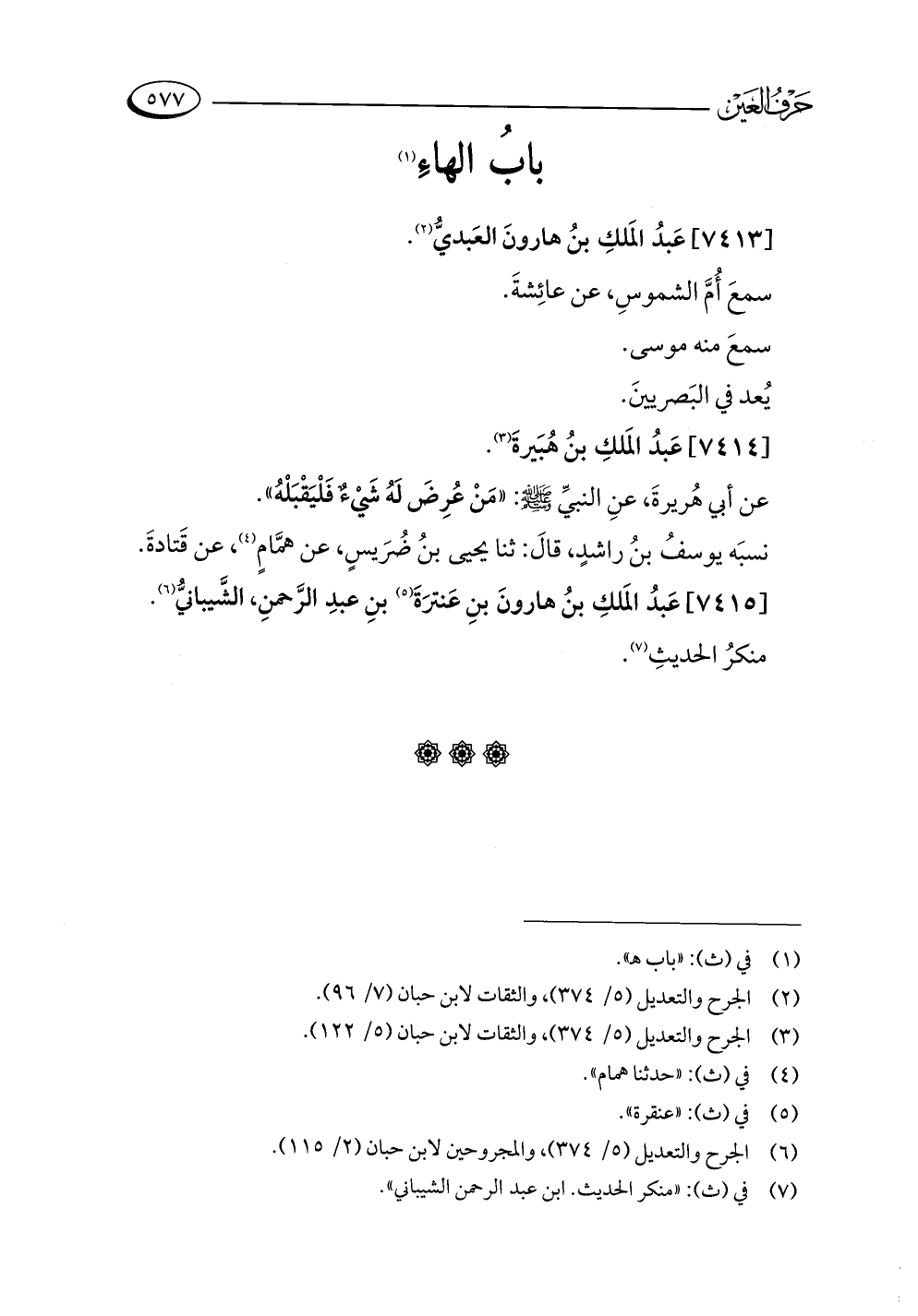 [٧٤١٥] عَبدُ المَلكِ بنُ هارونَ بنِ عَنترَةَ (¬٥) بنِ عبدِ الرَّحمنِ، الشَّيبانيُّ (¬٦).