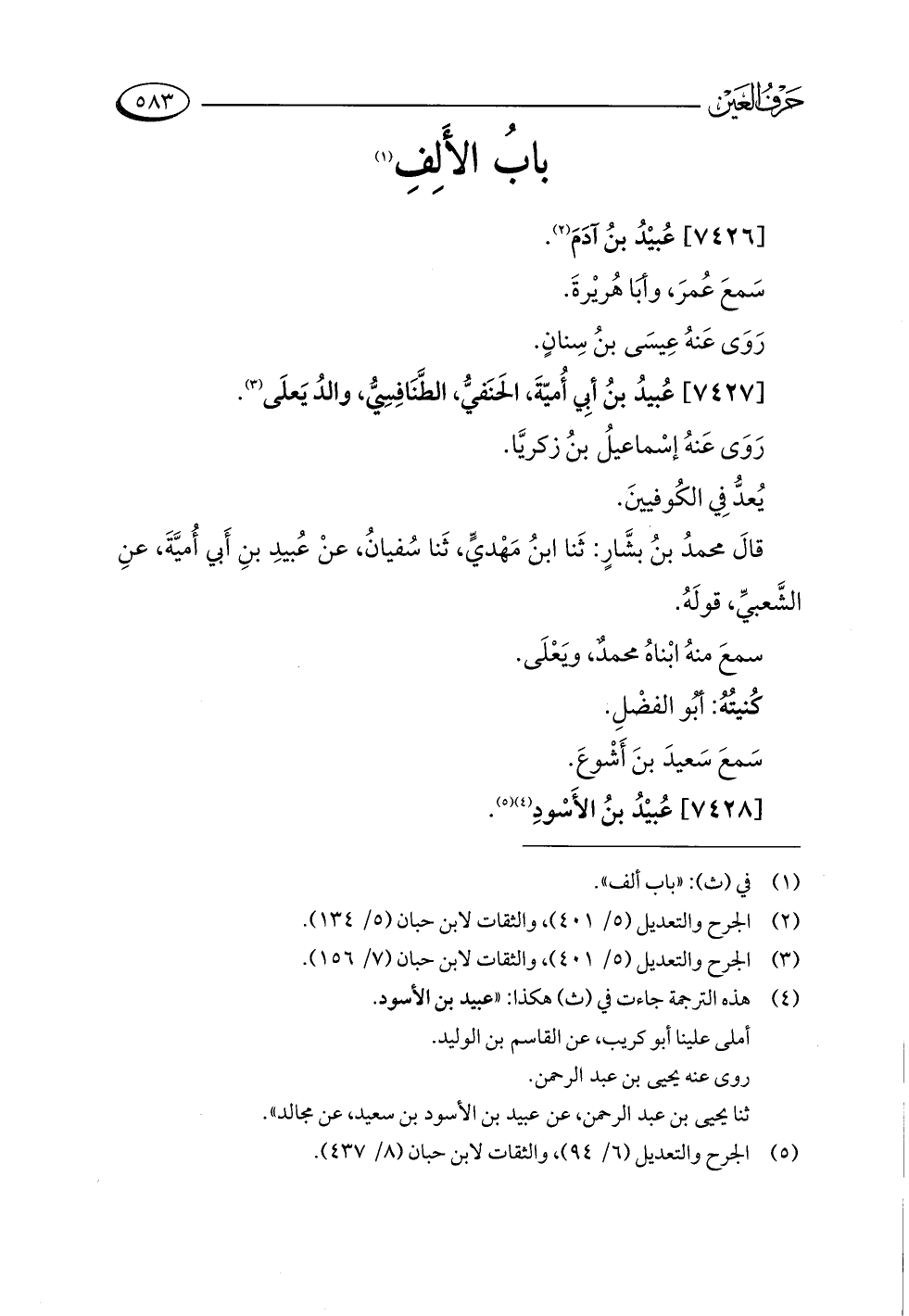 (¬٣) الجرح والتعديل (٥/ ٤٠١)، والثقات لابن حبان (٧/ ١٥٦).